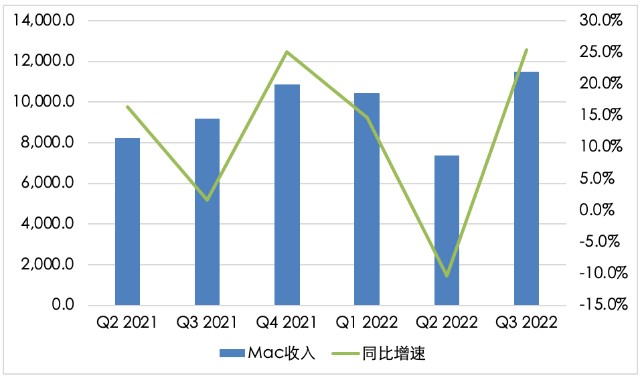 Mac收入115.1亿美元,同比+25.4%,大幅超出市场预期,为历史表现最好的季度,主要由于1)搭载M2自研芯片且外观重新设计的Macbook Air发布,产品力刺激消费者购买,2)二季度供应链瓶颈问题导致一部分积压订单流入三季度(二季度Mac收入同比-10.4%),四季度Mac收入增速预计将显著回落。iPad收入71.7亿美元,同比-13.1%/环比-0.7%,不及预期,主要由于去年同期苹果推出了iPad pro,高基数效应拖累收入增长叠加需求疲弱。可穿戴设备、家居及配件表现强劲,收入96.5亿美元,同比+9.8%,主要由新产品推动,9月苹果发布了新款Apple Watch和第二代AirPods Pro无线蓝牙耳机,但管理层表示Apple Watch Ultra型号也面临供应受限的情况。