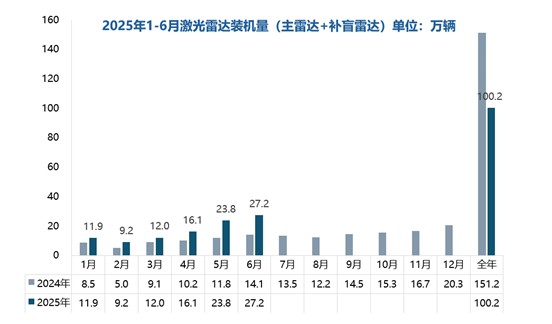 盖世汽车研究院报告显示,2024 年国内激光雷达装机量首次突破 150 万颗,同比激增 179.7%;2025 年上半年即达 100.2 万颗,同比再增 71%,全年有望冲击 250 万颗。禾赛科技、速腾聚创、华为等自主厂商已牢牢占据市场主导,激光雷达的“选配”身份正被“标配”全面取代,其安全价值也获得消费者广泛认同。
